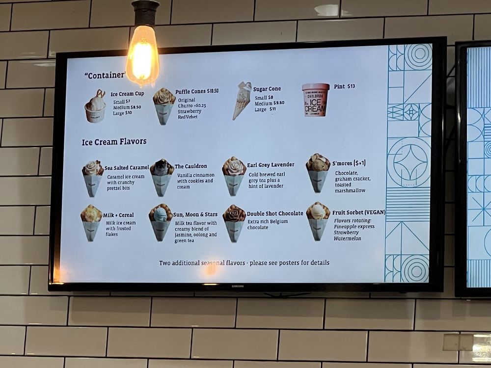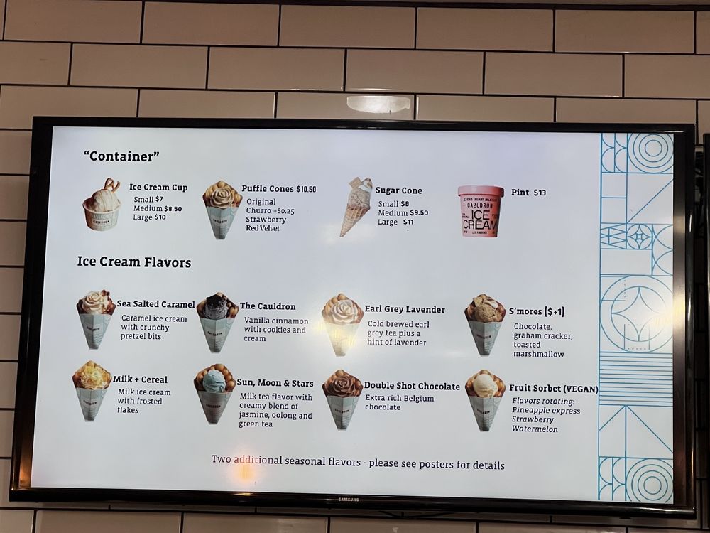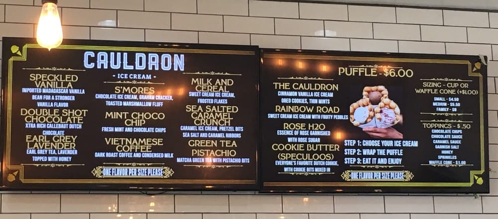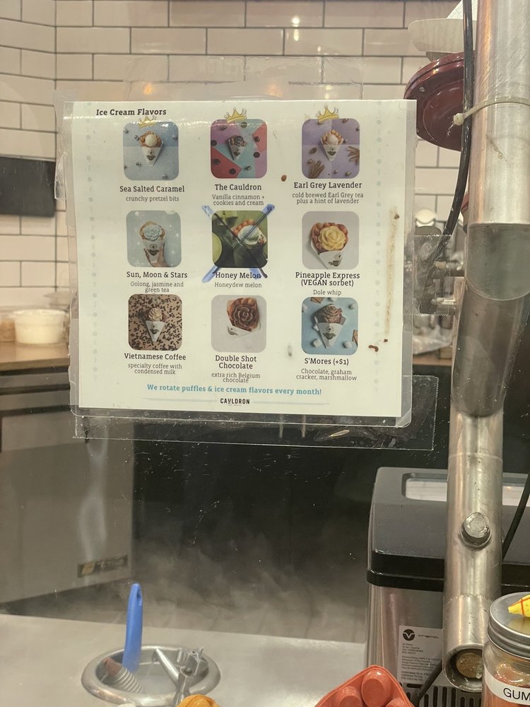 Cauldron Ice Cream, located in Santa Ana, CA, offers a variety of unique and delicious dessert options. With dairy-free and vegan options available, there is something for everyone. Customers rave about the salted caramel ice cream and the churro puff with ice cream. The creamy texture of the ice cream is a highlight, with added elements like pretzel bits and cinnamon sugar waffles creating a delightful experience. The rose-shaped ice cream is a standout, and the bubble waffle cones add a fun crunch to the dessert. While some reviews note the service could be more attentive, the overall experience is enjoyable. The ample parking and variety of flavors make Cauldron Ice Cream a must-visit for anyone looking for a cute and unique dessert spot.
